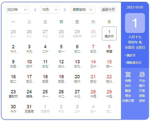 公历:2023年10月23日,星期一 农历:二零二三年农历九月初九